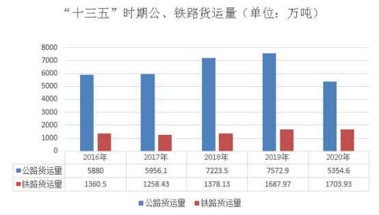 从发运量看,公路货运量5354.6万吨,同比下降29%,主要受去年疫情影响。在此之前,“十三五”时期,公路货运量保持持续增长;铁路和公路的货物运输比为6:19,物流以公路运输为主。
