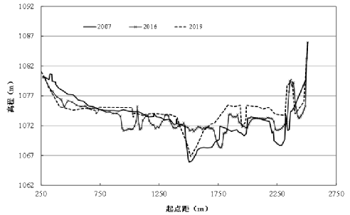 2013年8月海勃湾水利枢纽下闸蓄水运用。水流进入库区后,所挟带泥沙由于流速减小而沉积下来,到达库中后多沉积下来,造成水库回水末端处泥沙严重淤积,在大坝上游形成多处大面积河心滩,距坝10m—15km范围内大部分滩地淤积高程已超过1074.5m。截至2022年11月份,黄河海勃湾水利枢纽库区在1076m水位下的库容为2.78亿m3,比原始库容减少2.09亿m3,原始库容已累计淤损43%。海勃湾库区坝前6.76km至15.04km泥沙淤积量累计1.21亿m3,占总淤积量的80.8%。冬季防凌运用水位降低至1074.5m时,滩地裸露面积显著增加。