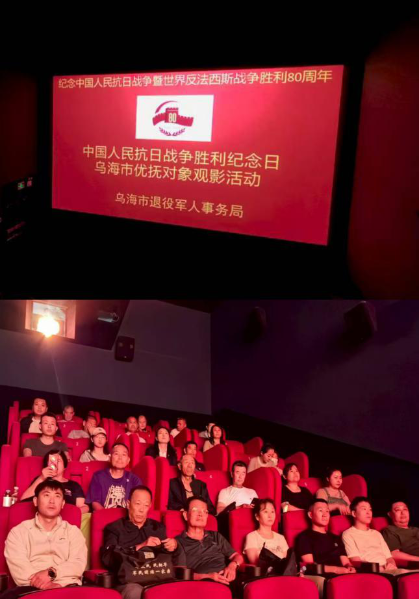 为铭记历史、缅怀先烈,弘扬爱国主义精神和伟大抗战精神,在中国人民抗日战争暨世界反法西斯战争胜利80周年纪念日,乌海市退役军人事务局组织部分优抚对象及最美退役军人开展“铭记荣光 聚力前行”——纪念抗日战争胜利80周年观影活动。