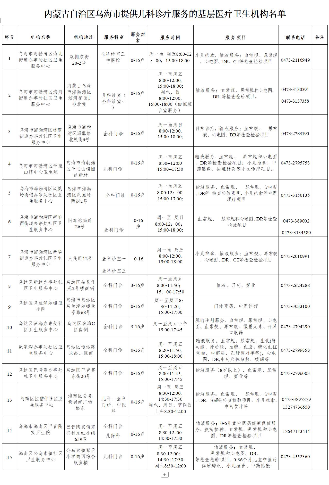 秋冬季节来临,儿童呼吸道感染疾病也进入高发时段。为了更好地守护孩子们的健康,让就医更便捷省心,我们特别提醒大家,请务必做好孩子的日常防护,科学预防呼吸道疾病;同时,我们整理了全市15家可提供儿科诊疗服务的基层医疗卫生机构名单,方便大家就近就医。