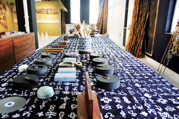 继续向里走,便来到了趣味十足的体验区。在这里,参观者不仅可以看到展示中国汉字演变历史的展墙、中国历代纪元表,还可以亲身体验结绳记事、古法造纸、油烟取墨,帛书、竹简、毛笔制作以及雕版印刷术等项目,多角度了解中国书法艺术的奥妙,体味中华文化的丰富内涵,激发对书法文化的兴趣和热爱。