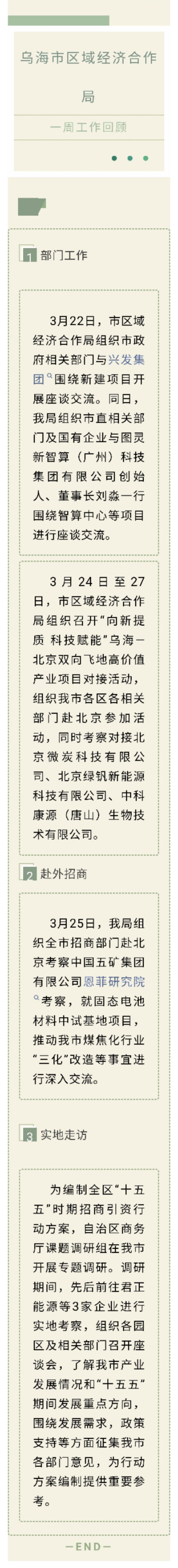 乌海市区域经济合作局丨一周工作回顾(三月第四周)