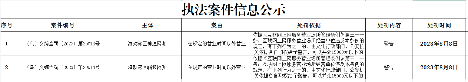 8月执法案件信息公示(一)
