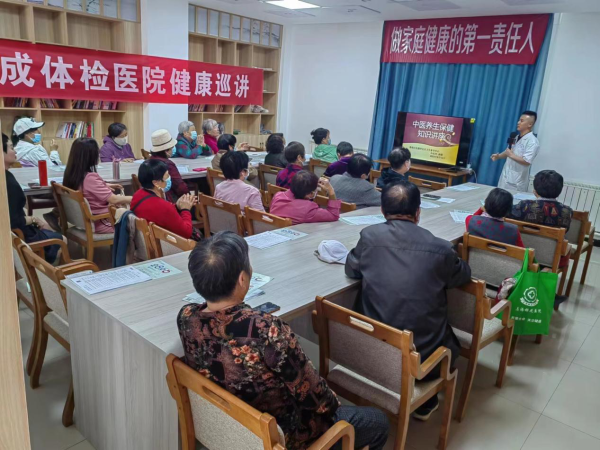讲师从合理膳食、适量运动、戒烟限酒、心理调节四个方面介绍了老年人养生保健常识和日常养生保健方法,引导老年人增强对高血压、糖尿病、阿尔茨海默病、恶性肿瘤等疾病的预防意识,现场还为老年人发放了宣传册,方便老人随时查阅。