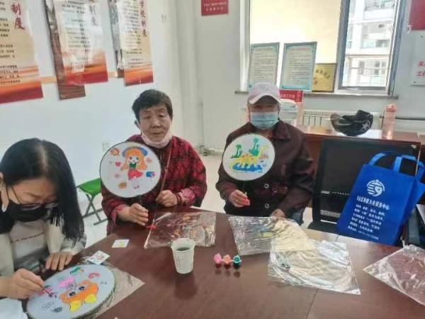 新达佳苑社区养老服务站开展“爱在花中·感恩母亲”手绘团扇活动