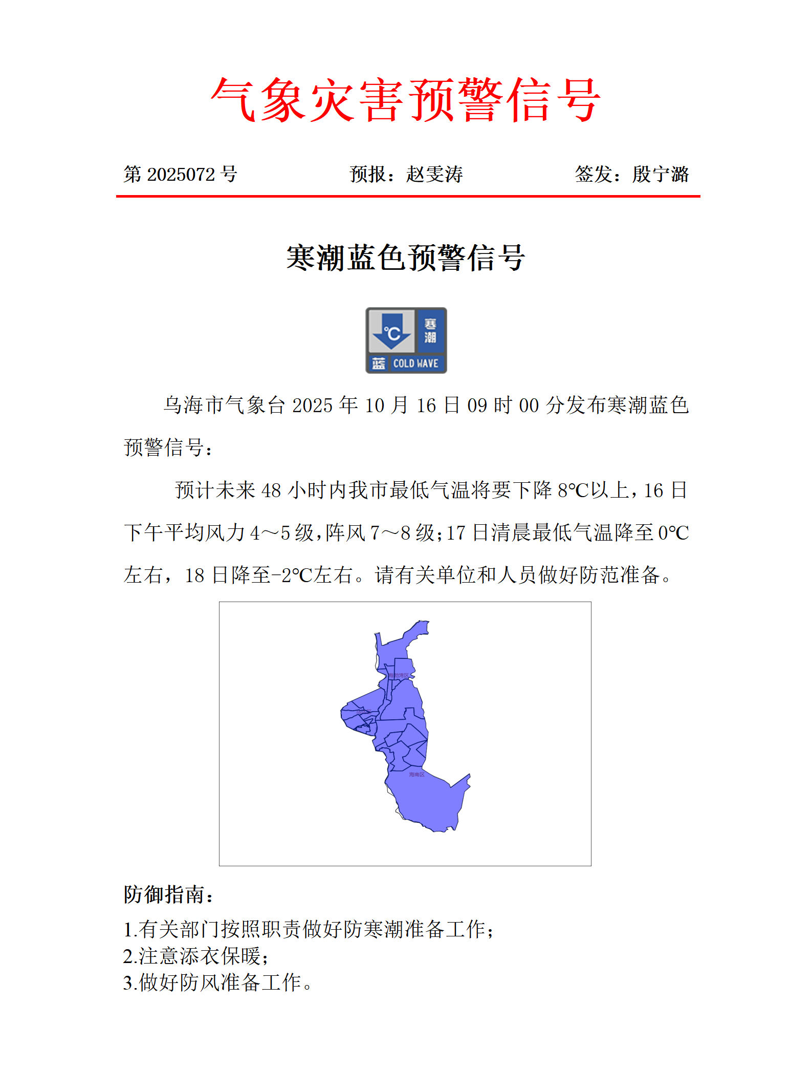 发文机构 信息分类 预警提示信息