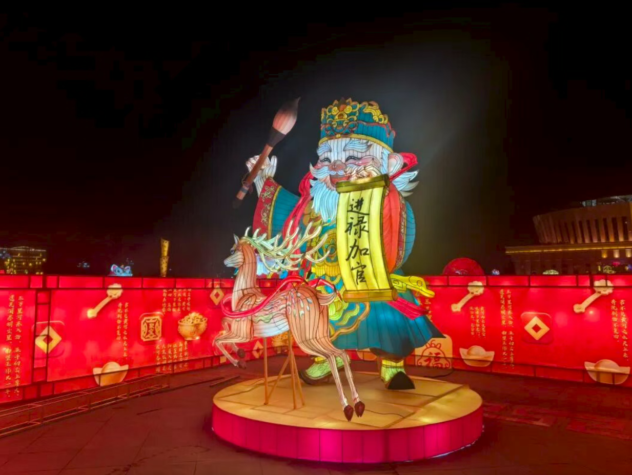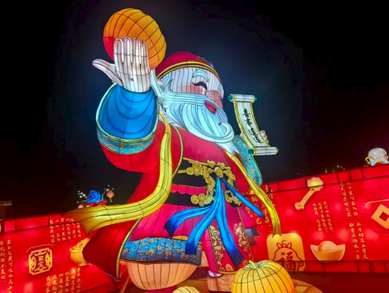 夜风中,红墙灯影流动
