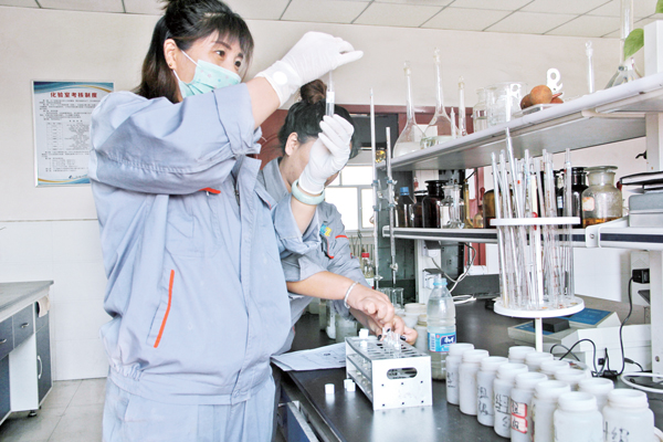 化验人员检测出水指标。 (秋华 摄)