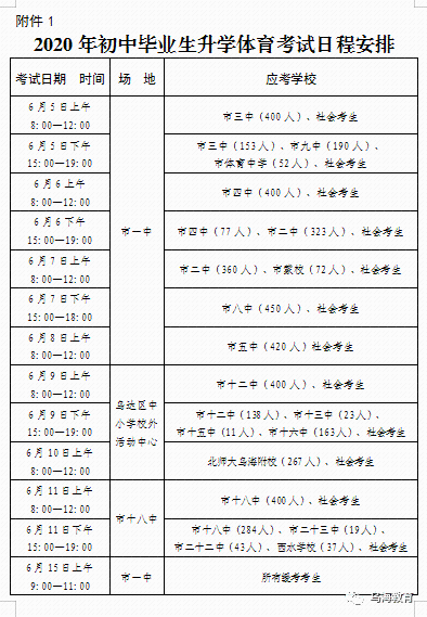 附件:1.2020年初中毕业生升学体育考试日程安排